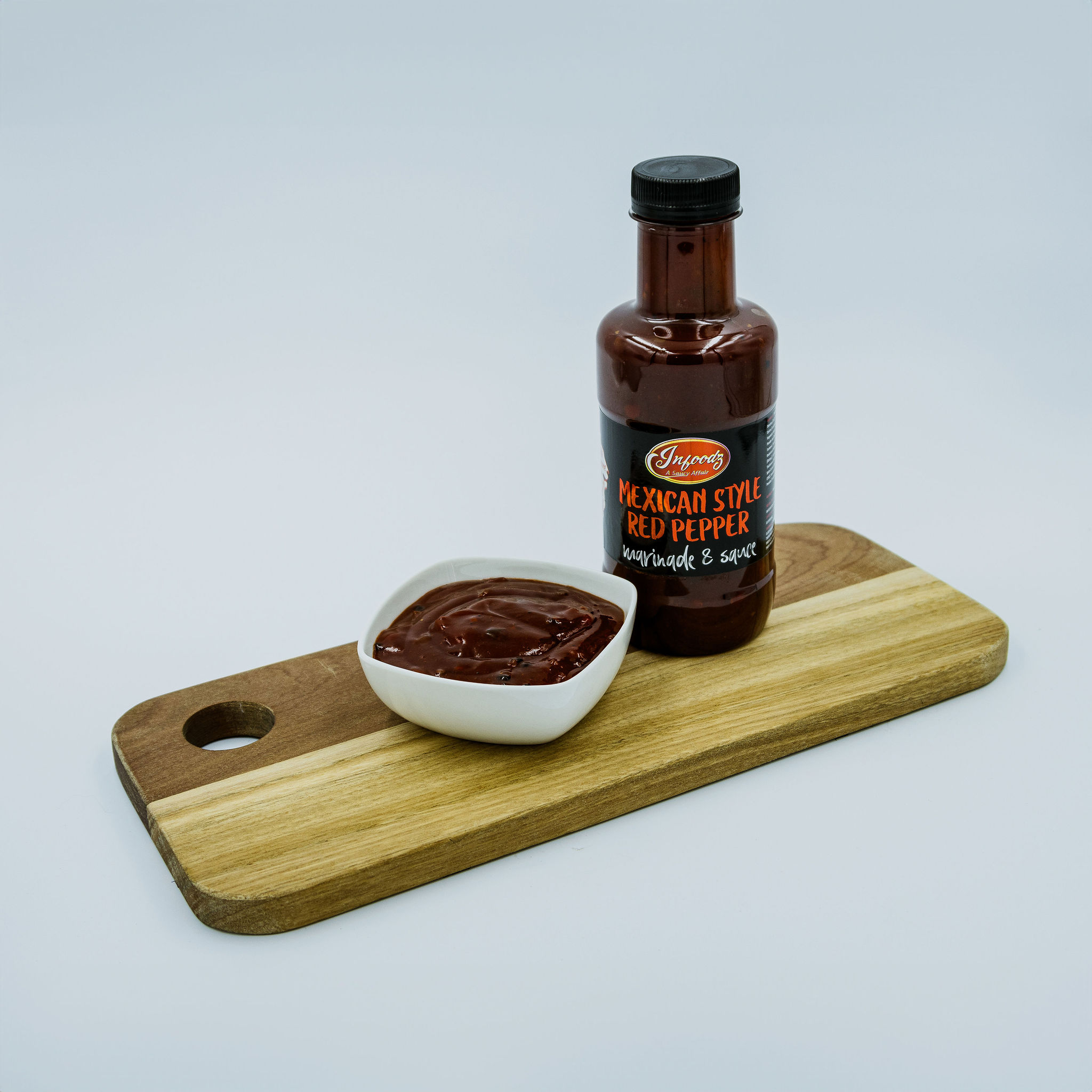 Mexican Style Red Pepper Sauce is vibrant red and viscous with a bold, glossy finish. Chunky with visible dehydrated red pepper pieces, delivering sweet and smoky notes with a mild chilli heat, bursting with flavour — ideal for chicken, pork, nachos, or grilled veggies with a Mexican twist.